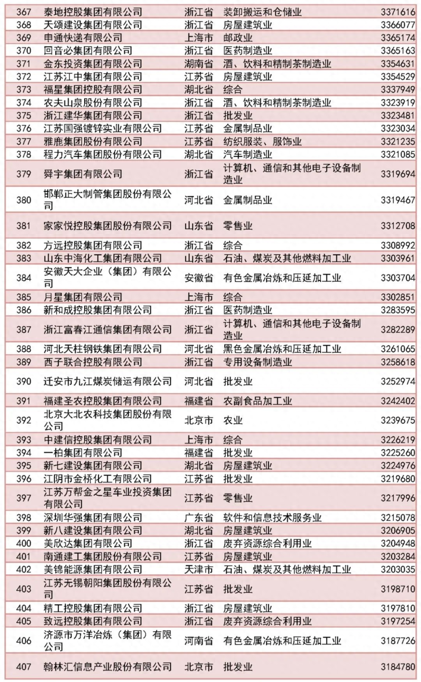 2023中國民企500強榜單,程力集團排名第378位: